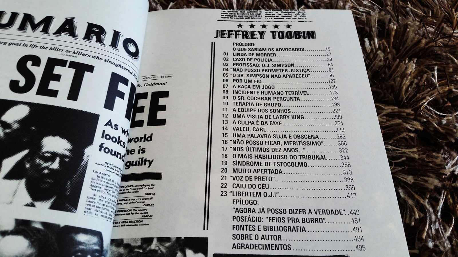 É exatamente sobre tudo isso que esse livro trata. Com uma riqueza de detalhes impressionante, o escritor e jornalisata Jeffrey Toobin reconstruiu todo o caso envolvendo o jogador de futebol e apresentou diversas informações sobre as estratégias da Promotoria e dos advogados de defesa, sobre o perfil das testemunhas e dos jurados etc.