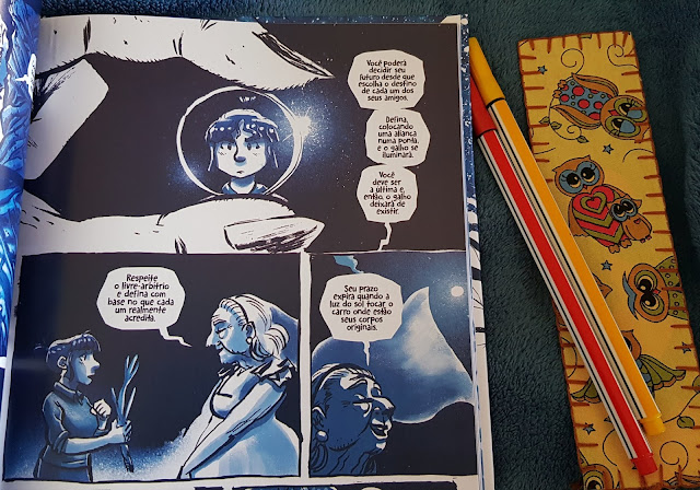 As ilustrações do Gustavo Borges estão delicadas e cheias de sentimento. Ele já havia me conquistado em Pétalas e em Edgar (veja aqui), mas confesso que nessa HQ achei os traços mais intensos e mais maduros. Amei!